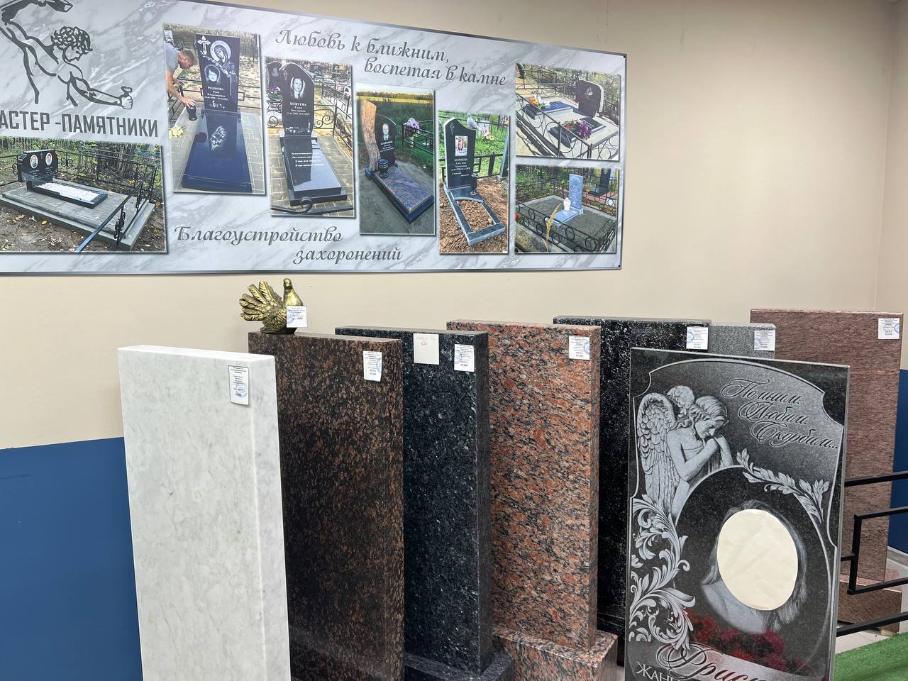 Приезжайте в наш выставочный зал на проспекте Октября, 94. Потрогайте камень руками, увидите эскиз портрета ДО ОПЛАТЫ — и выдохните. Мы успеем к Године,
