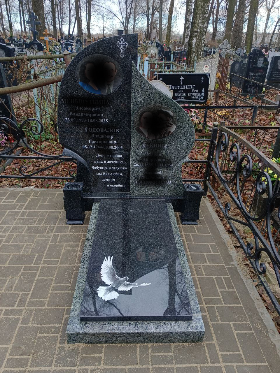 Здесь вы видите настоящие работы наших мастеров в Ярославле и области. Каждое фото сделано после установки: дата, имя заказчика (без фамилии) и честный результат — чтобы вы убедились: портрет похож, благоустройство аккуратное, а памятник стоит ровно. Это не «примеры для вдохновения» — это доказательство, что мы успеваем к године и делаем достойно, без «и так сойдёт».